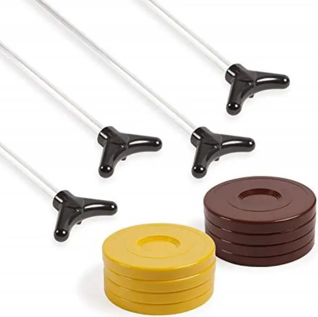 The 12-piece shuffleboard set includes 4 cue sticks and 8 pucks, so 4 people can start playing right away. In order to enjoy the most optimal game playing experience, make sure you play on ideally any flat surface. Therefore, enjoy the ultimate versatility as you'll be able to play both indoors and outdoors with this party game favorite. Plus, the game pieces are easy to set up and portable so you can bring the fun with you wherever you go.