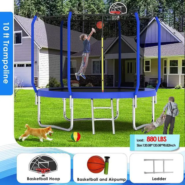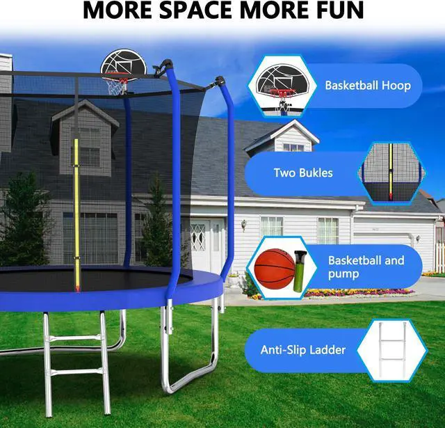 Introducing the Mersco upgraded Trampoline, available in sizes ranging from 8FT/10FT/12FT/14FT designed for both kids and adults to enjoy endless hours of outdoor fun! This versatile trampoline features a sturdy enclosure net for safety, ensuring that jumpers can bounce freely without worry. For added excitement, it comes equipped with a basketball hoop, perfect for friendly competitions and active play. Ideal for families with 4 to 8 children and adults, this backyard trampoline promises durability, stability, and an exciting way to stay active while enjoying the great outdoors. Elevate your backyard experience with the Mersco Trampolinewhere fun meets safety!