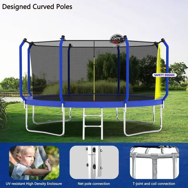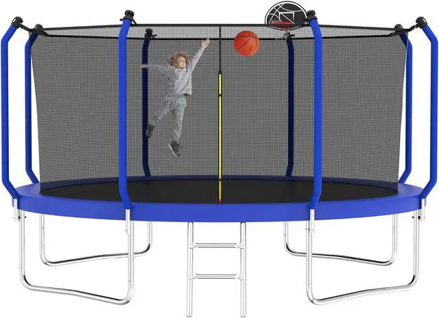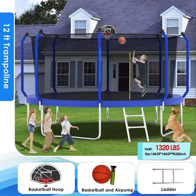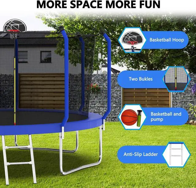 Introducing the Mersco upgraded Trampoline, available in sizes ranging from 8FT/10FT/12FT/14FT designed for both kids and adults to enjoy endless hours of outdoor fun! This versatile trampoline features a sturdy enclosure net for safety, ensuring that jumpers can bounce freely without worry. For added excitement, it comes equipped with a basketball hoop, perfect for friendly competitions and active play. Ideal for families with 4 to 8 children and adults, this backyard trampoline promises durability, stability, and an exciting way to stay active while enjoying the great outdoors. Elevate your backyard experience with the Mersco Trampolinewhere fun meets safety!