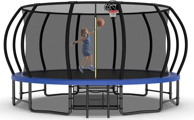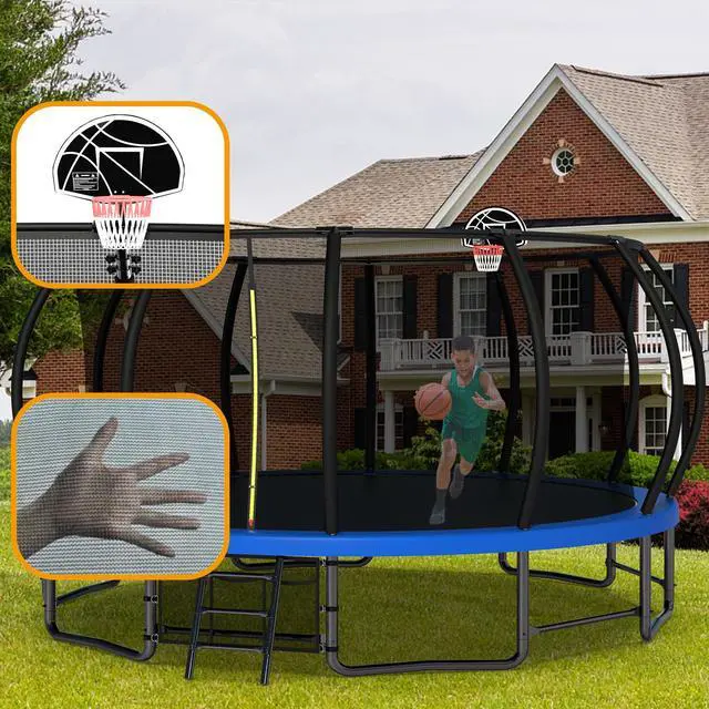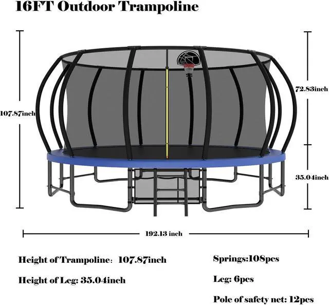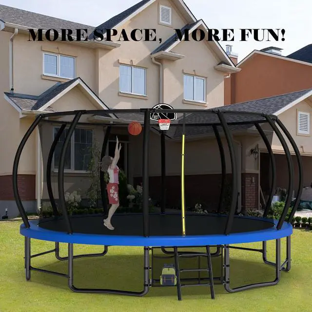 Introducing the Mersco 16ft upgraded Trampoline, available in blue and green color, designed for both kids and adults to enjoy endless hours of outdoor fun! This versatile trampoline features a sturdy enclosure net for safety, ensuring that jumpers can bounce freely without worry. For added excitement, it comes equipped with a basketball hoop, perfect for friendly competitions and active play. Ideal for families with 4 to 8 children and adults, this backyard trampoline promises durability, stability, and an exciting way to stay active while enjoying the great outdoors.