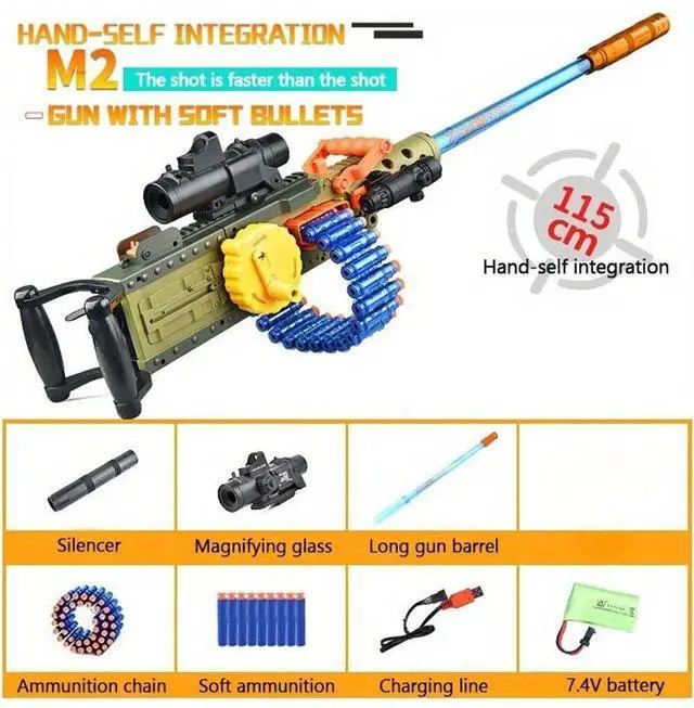 Introducing the zhenduo M2 Electric Soft Bullets Dart Heavy Machine Toy Gun, an exceptional addition to your outdoor fun collection. This top-tier toy gun, manufactured by the renowned zhenduo, promises to elevate your recreational activities with its innovative design and superior performance. Engineered for excitement, the M2 Electric Soft Bullets Dart Heavy Machine Toy Gun is perfect for thrilling outdoor adventures and provides endless entertainment for both children and adults.