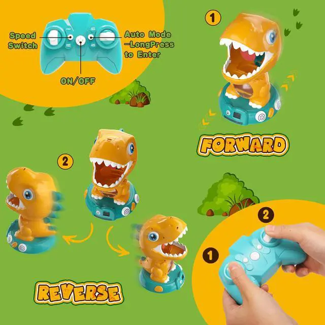 Long-Lasting Battery and 2.4 GHZ Remote ControlThe dinosaur Toys for boys toys age 4-6 can last for hours of continuous play with powerful lithium battery, your little one can enjoy non-stop dino fun!Equipped with 2.4GHz controller, It makes easy operation. Two or more RC dinosaurs can be controller together without frequency interference
