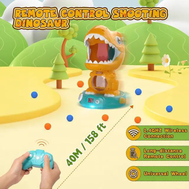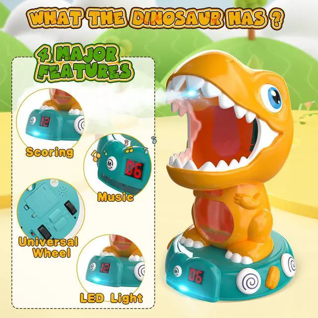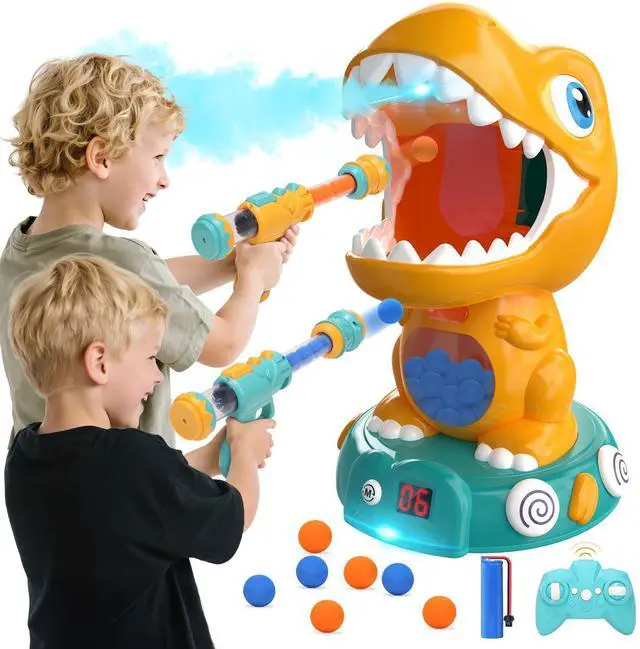 Auto Scoring and Spray Mist The RC dinosaur toys for kids 5-7 features an electric LED scoreboard that displays and sounds a count of one after each hit and it will make celebratory sound every 5 points. Steam function: with the dropper, add some drops of water into the reservoir on top. Once you hit the dinosaur's mouth, it will smoke and light up. Makes more realistic experience as in the Dino World