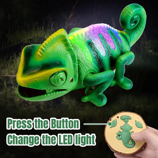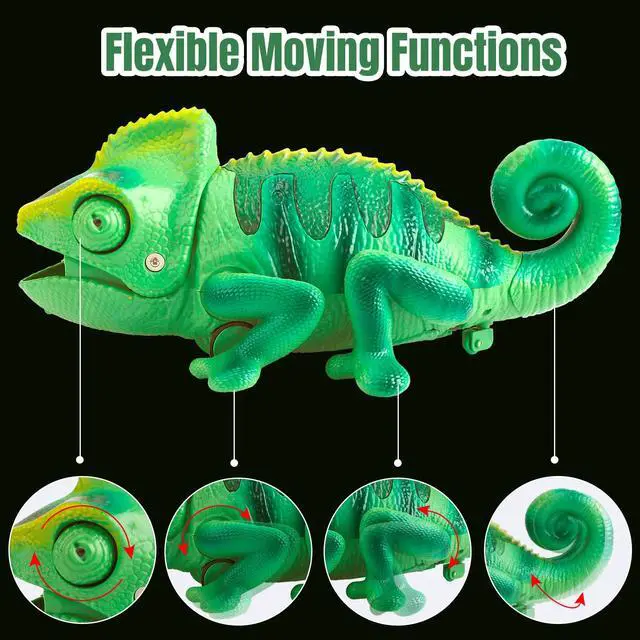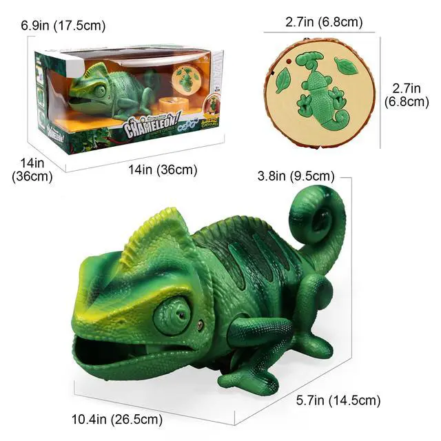 Fun Toy for Kids - This remote controlled Chameleon toy set is characterized by its realistic look, compact struction and impressive functions. Children can easily learn how to control it and having fun with it. Just like an intelligent robot toy, the chameleon can be a electronic pet for kids, dogs and cats no matter indoors or outdoors.