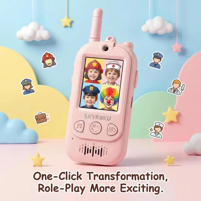 Spark Endless Imagination with AI Magic Costumes! Tired of toys that get boring fast? Our 2nd-Gen Video Walkie Talkies turn ordinary chats into a costume party! Watch your kids' faces light up as they transform into a robot, a monster, or a fairy princess on the screen in real-time. Its not just talking, its interactive play that keeps them engaged for hours
