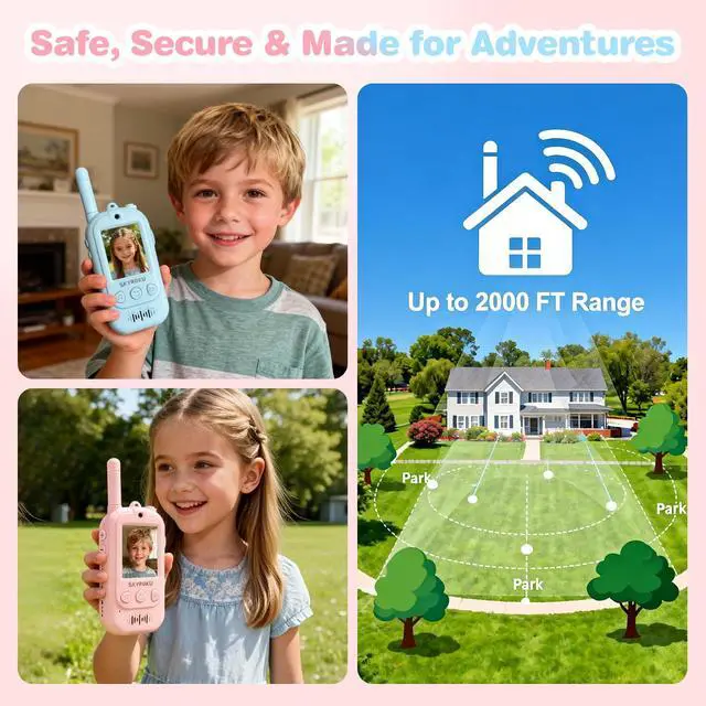 Unbeatable 2000ft Clear Range & Smart Dual Mode. Perfect for real adventures! Get crystal-clear video/audio up to 2000ft outdoors. Switch to Audio-Only mode to save battery for all-day camping, hiking, or backyard play. No more dropped callsjust uninterrupted fun