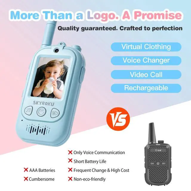 Unbeatable 2000ft Clear Range & Smart Dual Mode. Perfect for real adventures! Get crystal-clear video/audio up to 2000ft outdoors. Switch to Audio-Only mode to save battery for all-day camping, hiking, or backyard play. No more dropped callsjust uninterrupted fun