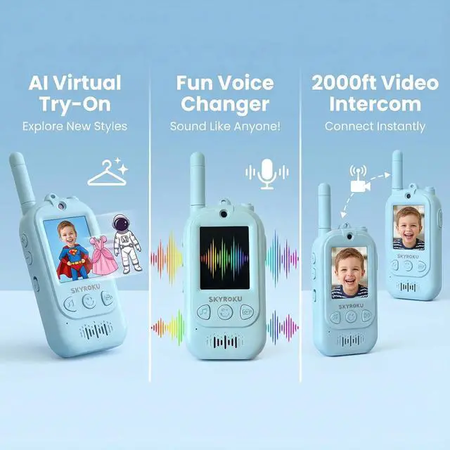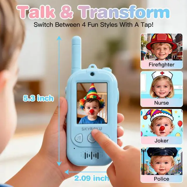Spark Endless Imagination with AI Magic Costumes! Tired of toys that get boring fast? Our 2nd-Gen Video Walkie Talkies turn ordinary chats into a costume party! Watch your kids' faces light up as they transform into a robot, a monster, or a fairy princess on the screen in real-time. Its not just talking, its interactive play that keeps them engaged for hours