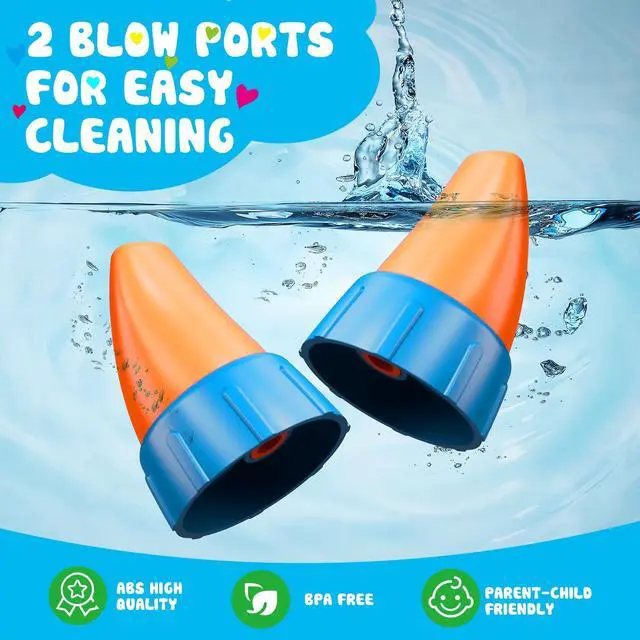 Dual Replaceable Mouthpieces for Flexibility: Includes an adjustable strap so kids can carry the toy easily wherever they go. Comes with two interchangeable horn blowers, roviding a hygienic option for group play