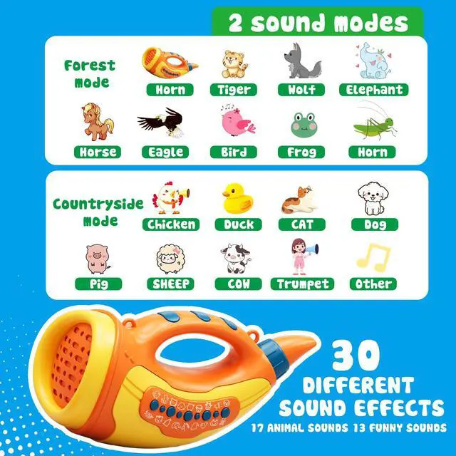 30 Unique Sound Effects: Features 30 delightful sounds across two modesForest Edition (9 sounds), Pastoral Edition (8 sounds), and 13 playful effects on the funny face key. Bring endless joy to your childs playtime