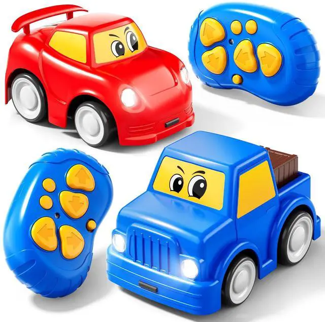 Remote Control Car 2 Year Old, Toddler RC Cars Ages 2-4 Boy, 2-Pack 2.4 GHz Truck and Race Car with Sound and Light, Easy Electrical Remote Control Toy Gifts for Boys Girls 3 4 5+ Year Old
