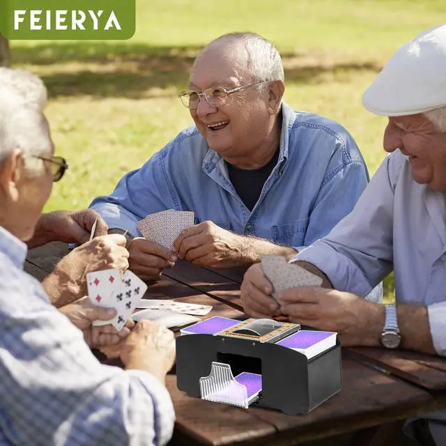 Card shuffler 2 deck:FEIERYA Card shuffler,battery operated,easy to use.Elderly,young people,children can use ,help you shuffle 1-2 deck playing cards in seconds,save your time