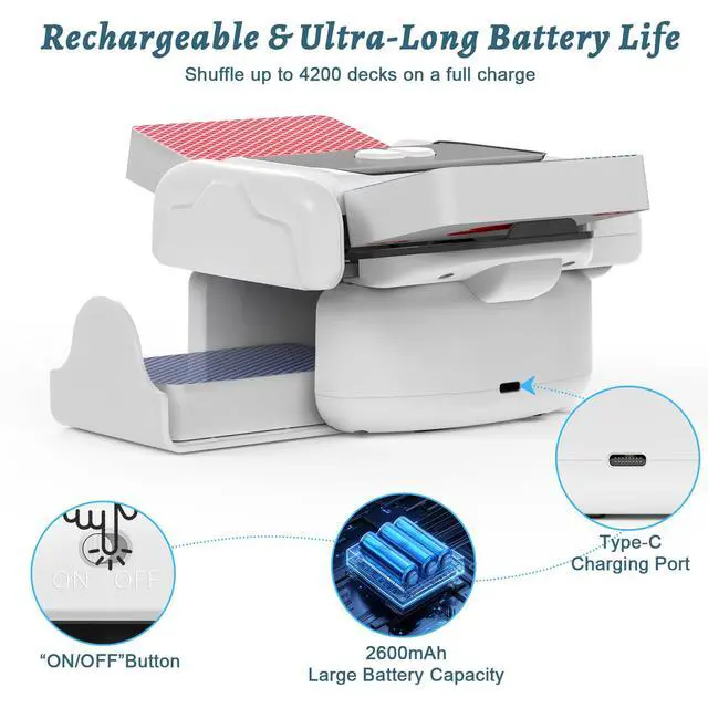 Holiky Automatic Card Shuffler 2 Deck, Rechargeable Playing Cards Shuffling Machine with One-Press AUTO&Manual Mode, Electric Poker Shufflers for UNO, Skip-Bo, Phase 10, Home Party Card Games