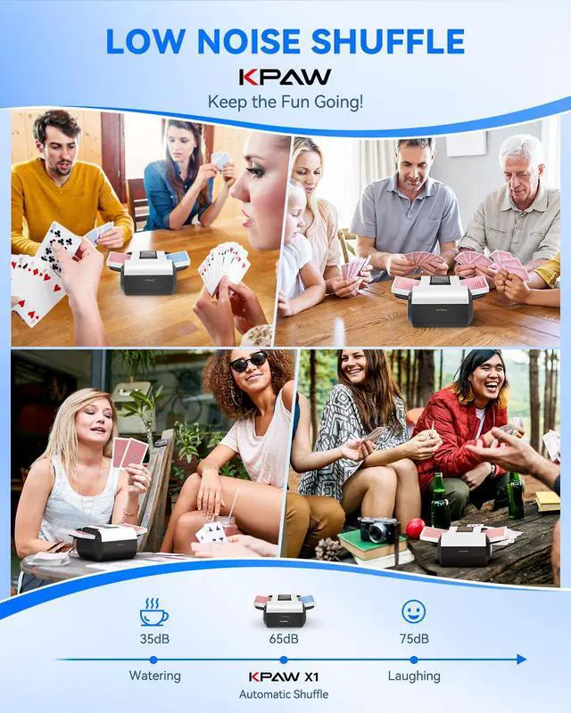 Designed for different sizes of cards, this KPAW Automatic Card Shuffler Machine is versatile and compatible. The retractable wing adjusts easily to accommodate different card sizes with a simple pull or push, ensuring smooth shuffling for any game. Enjoy playing Texas Hold'em, Skip-Bo, Poker, and Phase 10 card games with the KPAW Automatic Card Shuffler Machine. Take your card gaming to the next level with the KPAW Automatic Card Shuffler Machine.
