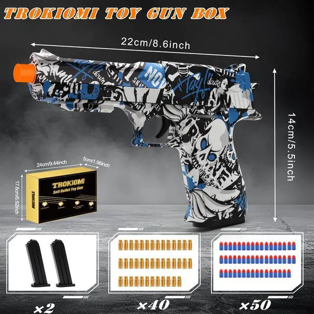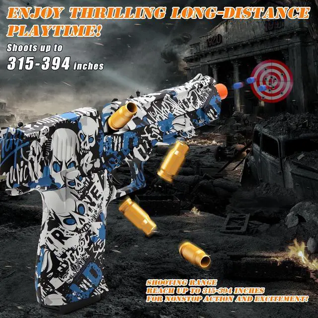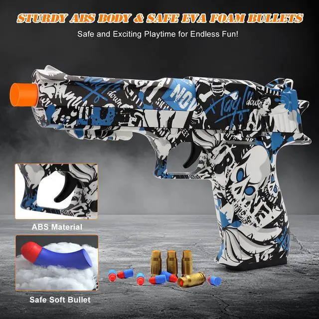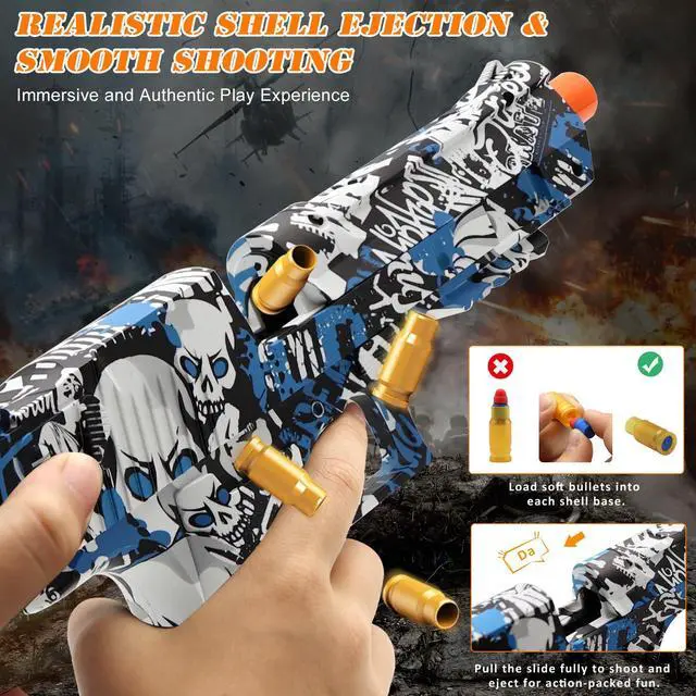 This toy gun is loaded with soft bullets made from high-quality EVA material, ensuring safe play without risk of harm. Kids can shoot with confidence!