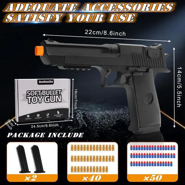 Foam bullets are secure, don't harming to human body, pets or objects. We are equipped with 50 soft bullets and 40 shells, which can satisfy use.