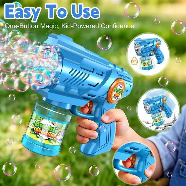 Kid-Friendly One-Touch Design: We believe the best toys let kids take charge of the magic. The one-button start is easy for little hands to use. The shatter-resistant material can handle excited running and accidental drops. Watch your child proudly hold up the bubble gun, creating joy all on their own. In that moment, youll know how precious this confidence-building experience is.