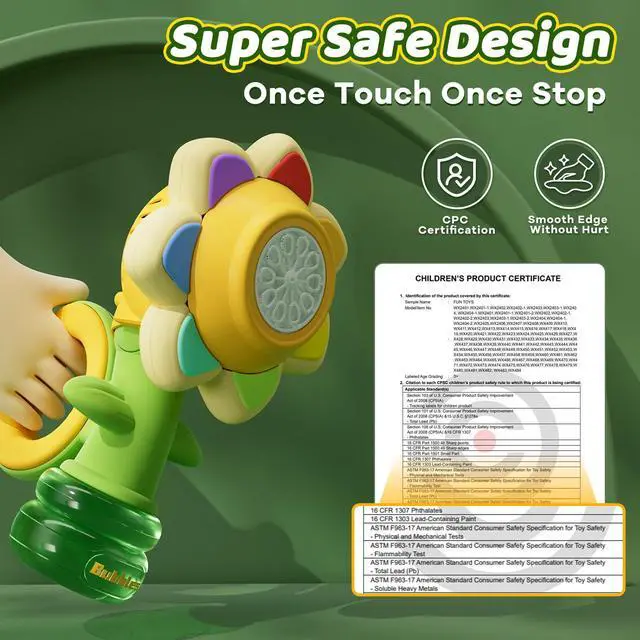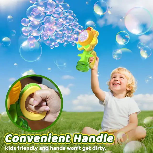 The sunflower design sways and dances as it releases bubbles, captivating children and encouraging them to move and dance along.