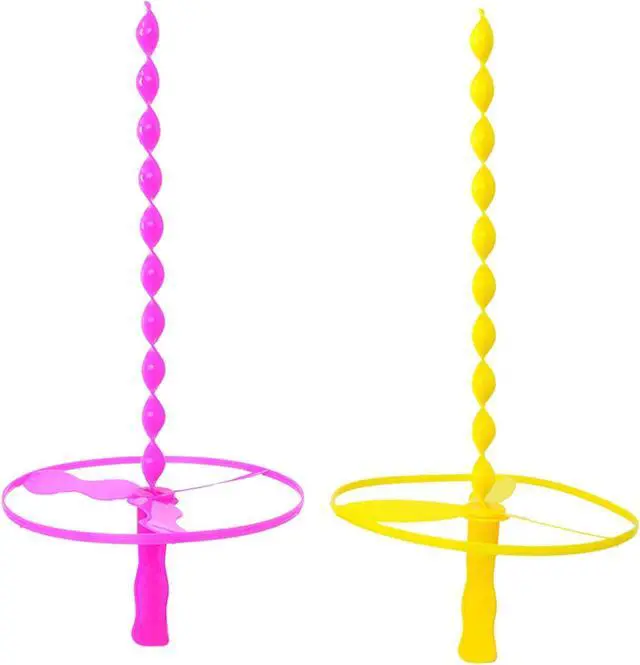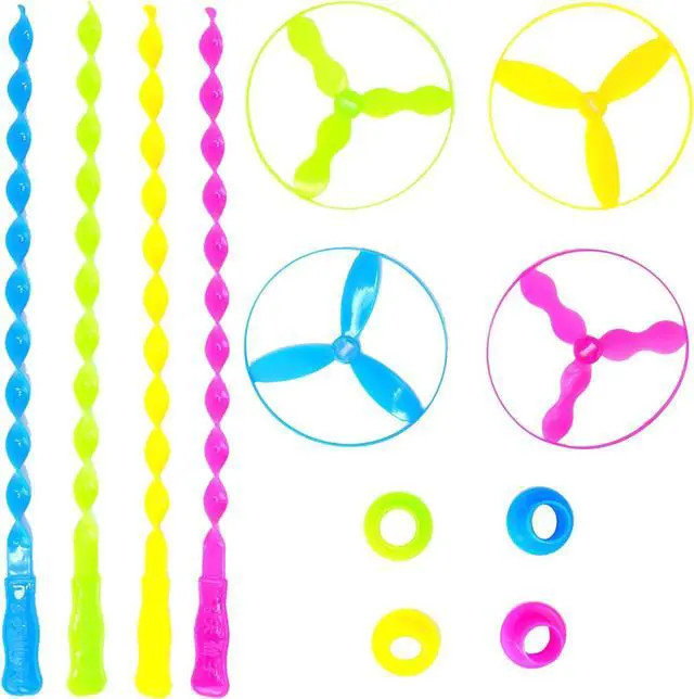 Big Mo's Toys Saucer Toy Flyers make great party favors and giveaways for a goody bag for any kids party. The pack includes 40 discs 40 twist sticks and 40 launcher rings. The colors can be mixed and matched for more fun. To fly these Dragonflies place the launcher then the frisbee on the stick lift the launcher and the disk will fly. These assorted Spring / Summer flies are ideal to play with any kid toddlers or babies in the park lawn or yard. Makes a great prize for students. Great toy for your cat dog or pet.