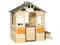 KIDS WOODEN PLAYHOUSE: Give your kids a place to play outside with this outdoor playhouse! It includes a door, windows, bench, service station and flowerpot holders.
