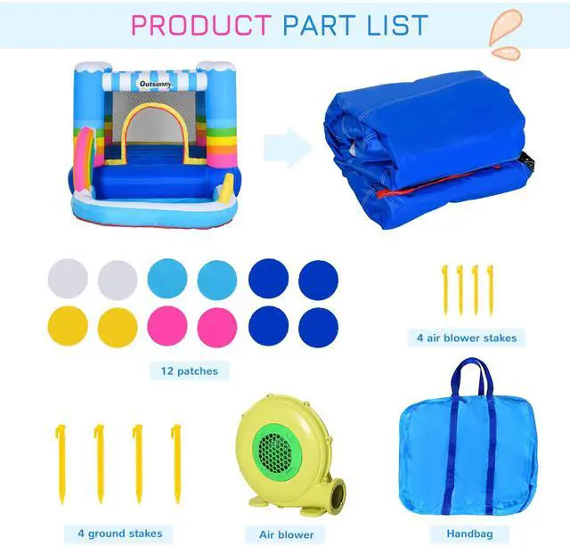 Inflates Quickly: A high-quality electric air blower is included with our large bounce house. The whole castle can be inflated very quickly for just 2 minutes and saves you wait time.