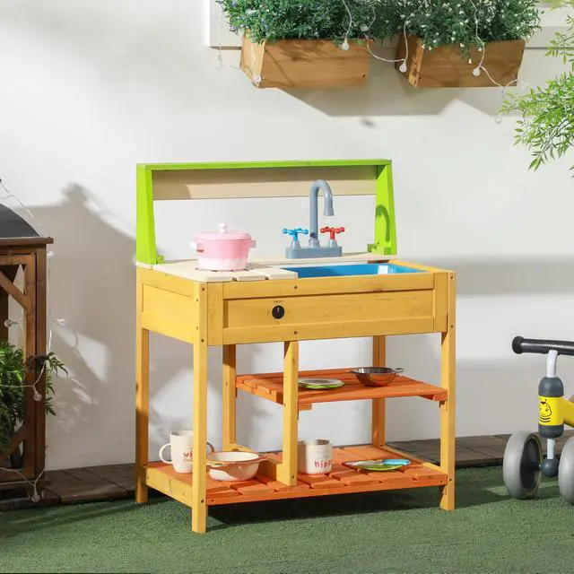 Robust Wood Construction: Crafted from fir wood, this kid's mud kitchen offers greater stability and outdoor longevity for reliable fun.