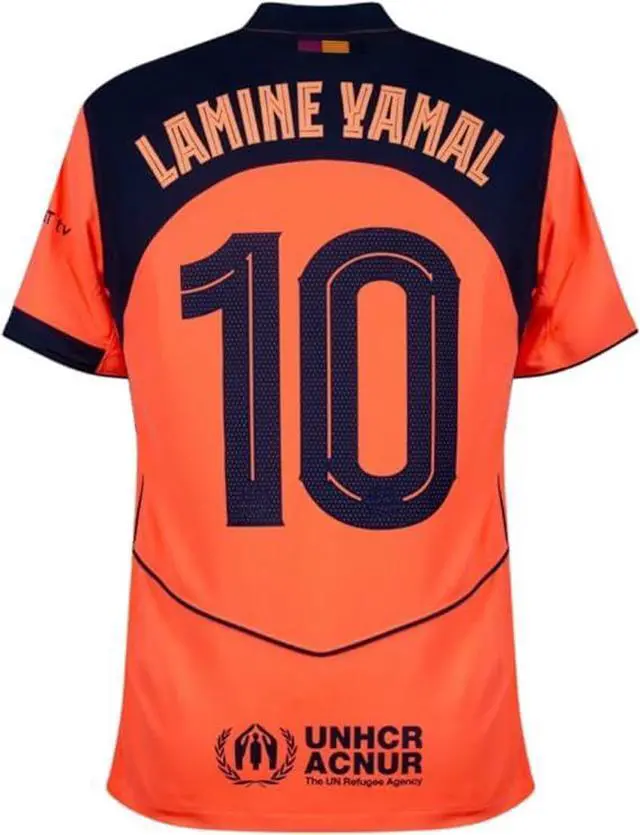 Lamine Yamal #10 Men's Soccer Jersey Fan Edition 2025/26 - Short Sleeve, Home/Away/Third/Fourth Kit, Casual Football Shirt, Breathable Polyester, US Sizes S Orange / Navy