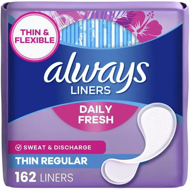| Included Components | Always Thin Daily Panty Liners For Women, Light Absorbency, Unscented, 162 Count (Packaging May Vary) |