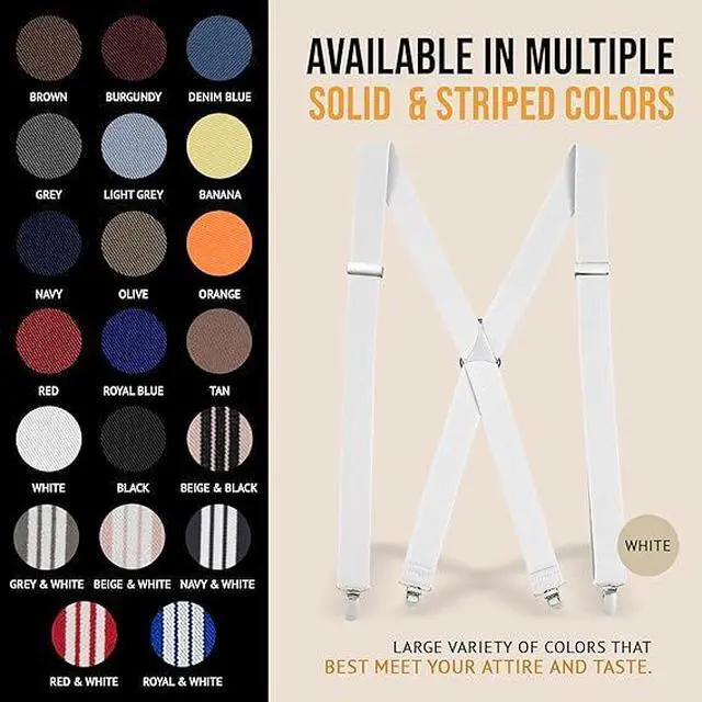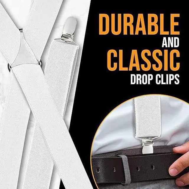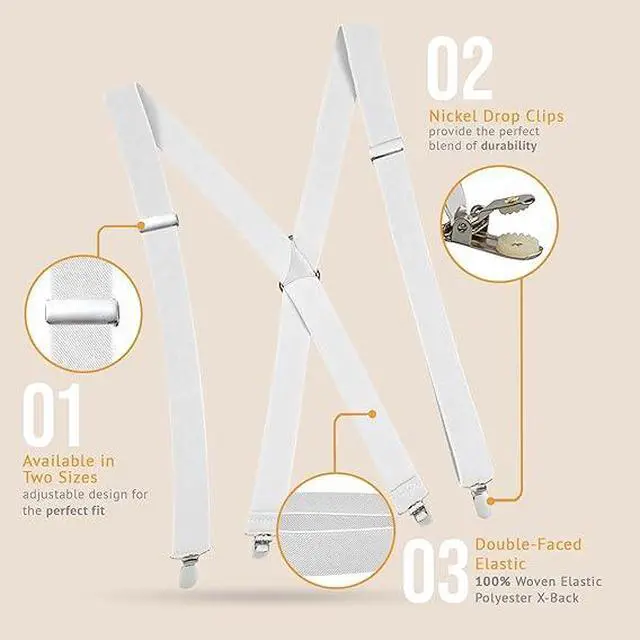 Hold'Em X-Back Men's Suspenders, Adjustable and Stretchable Suspenders for Men, Durable Straight Clip-on Suspenders, Men Accessories for Casual and Formal Outfits, 46 inches, White