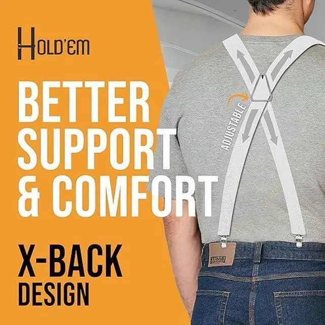Keep your pants from sagging or falling down with HoldEms X-Back Mens Suspenders!