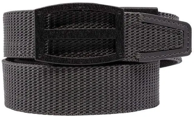 Nexbelt Ratchet Technology EDC Titan Gray PreciseFit Nylon Gun Belt for Concealed Carry Unisex for Men and Women. Designed specifically with durability, flexibility, and comfort in mind. These Nexbelts are great for dressing casual and for carrying extra weight on your belt, like your protection device, flashlight, or other gear. Buckle size 1 5/8" x 2 5/16" for Defender and 1 11/16" x 2 1/2" ? Belt strap width is 1 7/16". Cut to size and fits up to 50" waist for most all models and up to 67" for our XL belts.