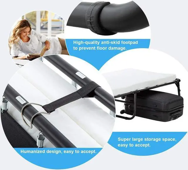 UPDATED FRIENDLY DESIGN:Our folding bed does not need to be assembled for your convenience.This Guest bed is foldable and easy to carry.There are Very light folding guest bed for easy carrying.