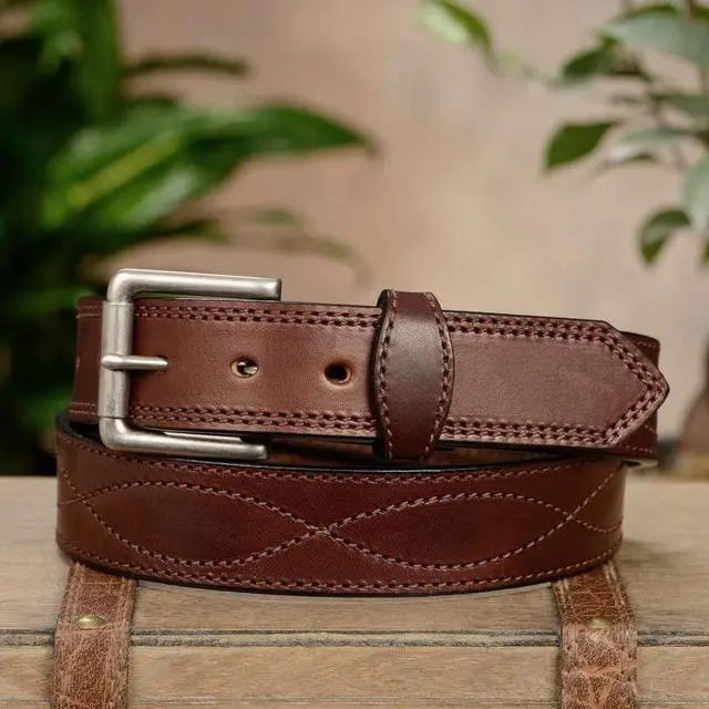 This quality USA made belt for men will be your new favorite. Its handcrafted from one piece of premium leather with beautiful, durable nylon stitching. We stitch this belt in a figure 8 pattern to give it a unique look. It takes our crew 3 months of training to master this type of stitching pattern!