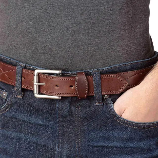 Each buckle belt comes with five belt holes that are evenly spaced 1 inch apart on the strap. Youll love the intricate stitching throughout and antique nickel roller belt buckle. The roller on the belt buckle allows you to pull the belt extra-tight with ease. The clasp is also equipped with Chicago screws, so you can easily change out the buckle to create a different look.