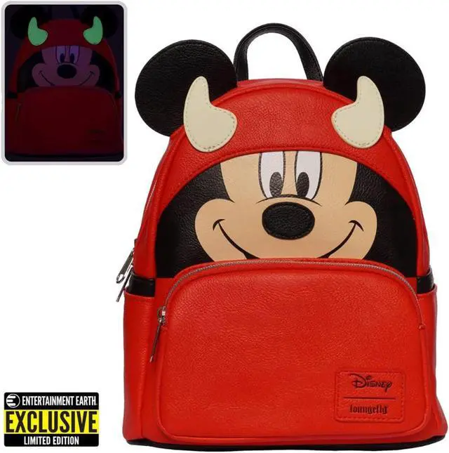 This is a EE Distribution Mickey Mouse Devil Mini Backpack. This great-looking bag is produced by Loungefly. Loungefly is well known for making high-quality accessories.