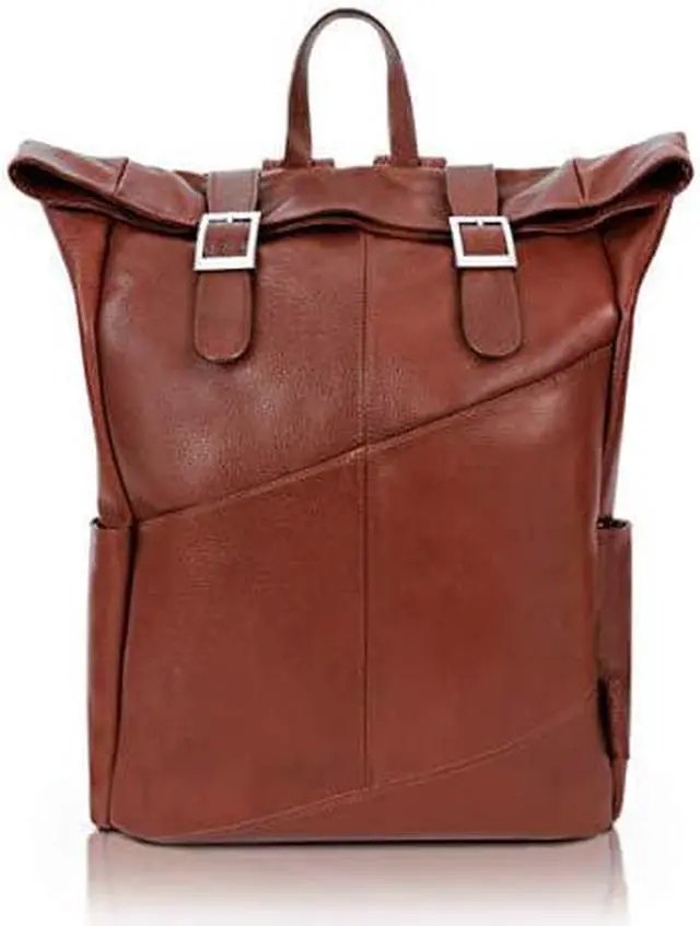 Leather Dual Access Laptop Backpack with flap slip lock closure. Front asymmetric pocket with two side pockets. Secured hidden side zipper pocket. Fully-lined interior with leather trim and silver accent hardware. Interior compartment features built-in laptop protection, tablet pocket and secured zipper pocket and organizer for business cards, pens, and accessories. Padded adjustable backpack straps. Padded mesh back with smart strap for piggy-backing onto rolling cases. Leather Dual Access Laptop Backpack with flap slip lock closure. Front asymmetric pocket with two side pockets. Secured hidden side zipper pocket.