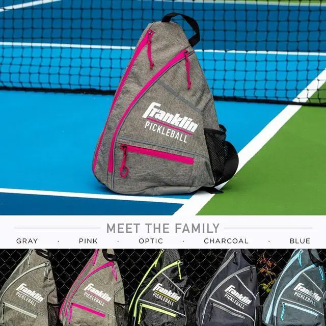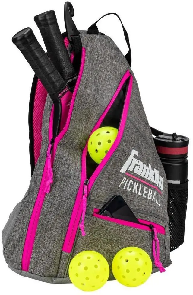 The Franklin Pickleball Sling Bag is the official bag of the US Open and has been designed to carry all your pickleball gear and more comfortably and conveniently. The Sling Bag can hold 6 paddles securely and 6 X-Performance 40 official pickleballs with room to spare. This bag will help keep your personal devices safe in the designated felt lined soft pocket. Heading to the court on a hot day? The Franklin Pickleball Sling Bag can carry your favorite sports bottle too. When you get to the game, clip the bag onto the court fence with our easy to use fence hook!