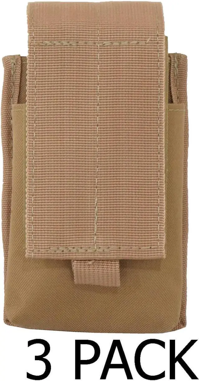 This Every Day Carry single magazine pouch is perfect for holding your ammunition and keeping it in place. It has adjustable Velcro straps to keep your magazine secure in any environment along with MOLLE attachment points so it can easily attach to your vest, pack, belt or drop leg platform. It also has additional Velcro on the rear so you can fasten it to your gear without needing to connect the MOLLE straps. It can hold up to two 5.56 magazines when stacked in each panel. Includes three magazine pouches.