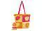 The bold colors and tropical palm leaf design of this tote bag set make it a summer wardrobe must-have. It's great for toting with you to the beach or pool.. Measures 20 x 12 x 8 inches. Made of cotton with ruffle trim; washable. Coordinated swimsuit sack included. Zippered pocket inside. Made by C & F Enterprises, imported