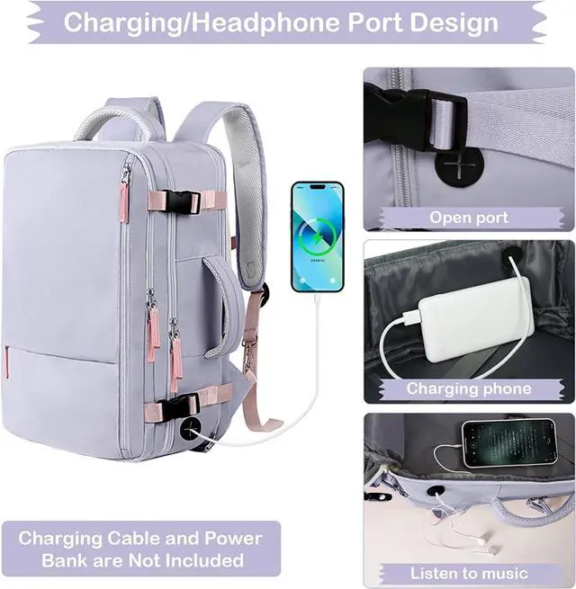 • [Multifunctional Opened Port for Charging & Listening]: The versatile port of the travel backpack side can provide convenient access to charge your phone or you can use it as a headphone port to listen to your premium music, free your hand. (Tips: Only an opened port, charging cable and power bank are not included)