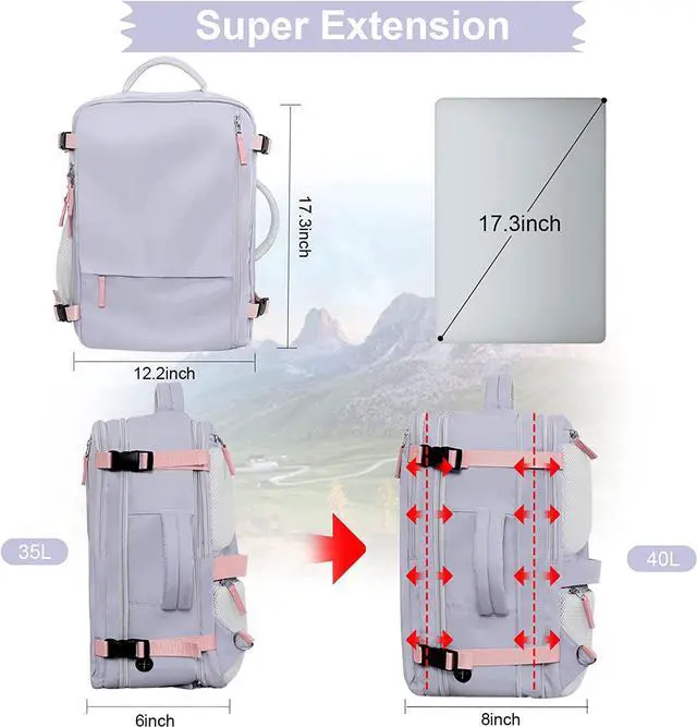 • [Expandable Capacity & Suitable for 17.3 inch Laptop]: This laptop backpack has a laptop compartment with good thick cushion, which can protect your laptop well and suit for 17.3 inch laptops as well. This travel backpack has lots of space and pockets for what you need it for, can extend from 35L to 40. A good companion for 3-7 days travel. (Backpack Net Weight: 2.5Lb)