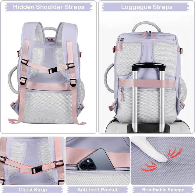 Material & Anti-theft Design]: This travel backpack for women is made of durable waterproof polyester, good in air permeability and heat dissipation. Backpack back zipper pocket protects your precious items, such as wallet, passport, and ID card from potential theft when traveling or lining up. (Clean