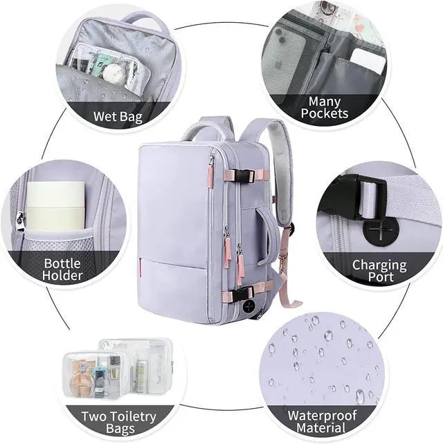 Corn Extra Large Travel Backpack for Women as Person Item Flight Approved, 40L Carry On Backpack, 17 Inch Laptop Backpack, Waterproof Backpack, Hiking Backpack, Casual Bag Backpack(Gray Purple)