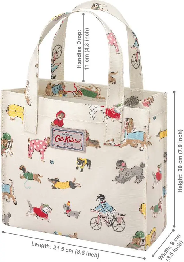 A baby version of classic oilcloth bookbag, this bag is the perfect size for those extra bits and bobs that won't quite fit in your handbag. Made from cute Small Park Dogs shiny oilcloth with grab handles and a reinforced base for added durability.