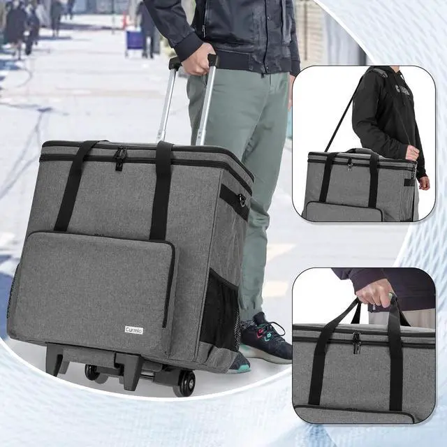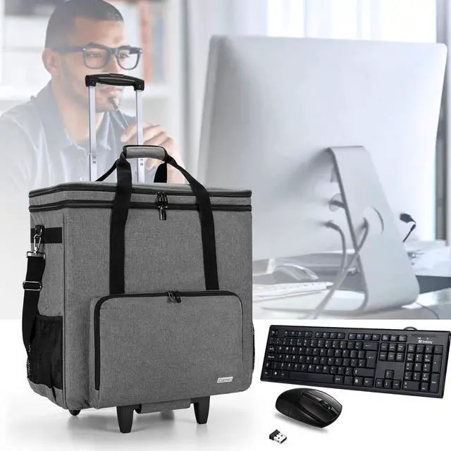 Rolling Desktop Computer Carrying Case, Double Layers Computer Tower Travel Bag with Wheels for PC Chassis, Keyboard and Mouse, Gray (Bag Only, Patented Design)
