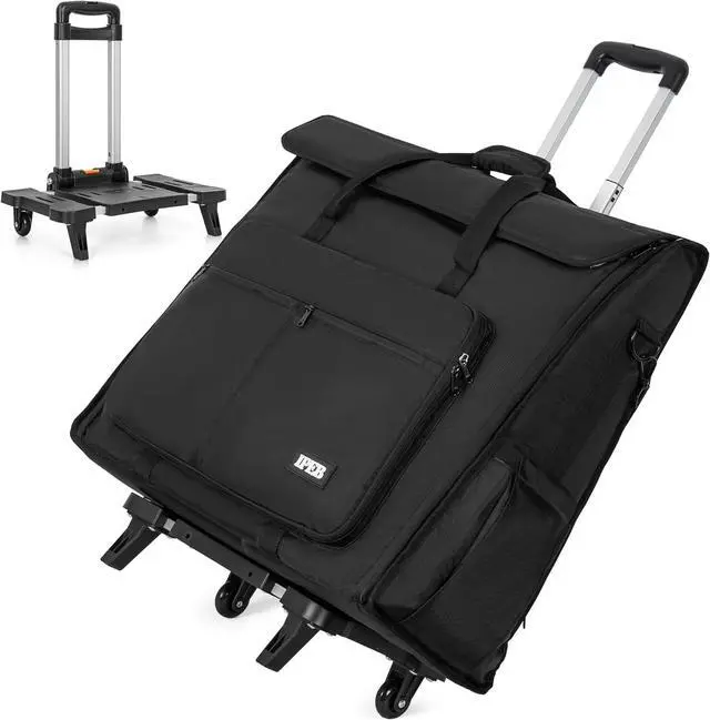 The folding and adjustable Hand Truck with 2 wheels is convenient to transport computer on trips. Safe and secure, sturdy hard panel reinforcement in front flap for extra screen protection. At the back, the luggage strap with small pocket is perfect for your small items, the elastic pocket design on both sides makes it more convenient for you when traveling
