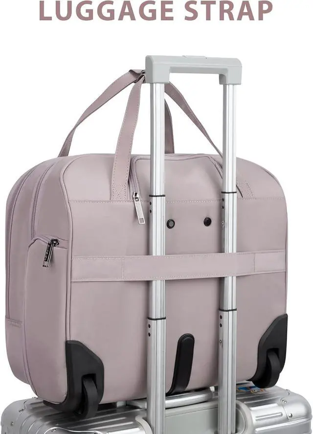 The rolling laptop case has a leather grip, smooth zippers and waterproof bottom corner guards; retractable aluminum push-button handle and 2 silent rubber wheels make the briefcase roll effortlessly and more maneuverable. In addition, the rolling bag is equipped with a trolley strap on the back to securely fasten the bag to your luggage, making travel more comfortable.