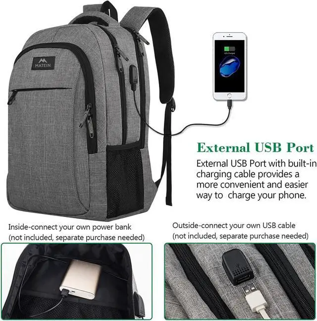 With built in USB charger outside and built in charging cable inside, this usb backpack offers you a more convenient way to charge your phone while walking. It's a great tech gift for him from wife, daughter and son. Please noted that this backpack doesn't power itself, usb charging port only offers an easy access to charge