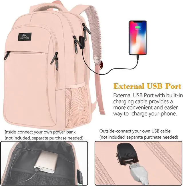 With built in USB charger outside and built in charging cable inside, this usb backpack offers you a more convenient way to charge your phone while walking. It's a great tech gift for him from wife, daughter and son. Please noted that this backpack doesn't power itself, usb charging port only offers an easy access to charge