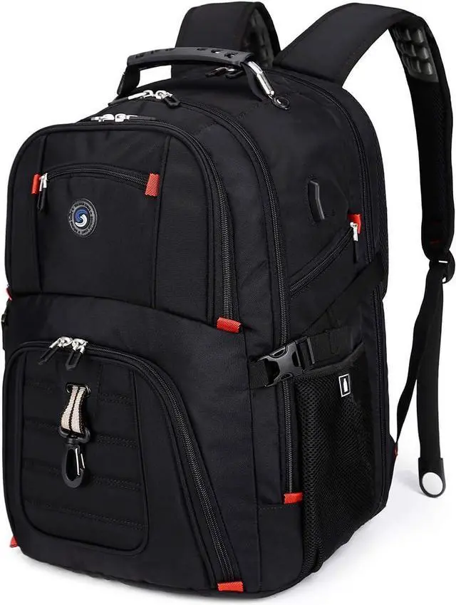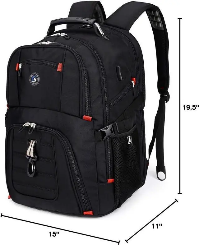 Size of extra large backpack: 19.5 x15x11 (inches), Capacity: 50L, the separate padded laptop compartment can accommodate 13 inch MacBook, 14, 15, 15.6 inch, and 17 inch laptop backpacks/computers, suitable for adults, women, men, and teachers. Laptop backpack made of high-quality polyester fiber material, Heavy duty large notebook backpacks suitable for cities (This item is not intended for use by people 12 years old and under)